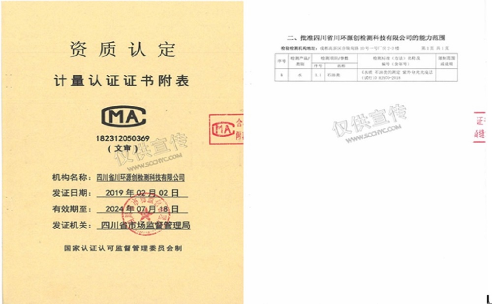 四川省川環源創檢測科技有限公司順利通過 國家認監委“飲用水中鐵、三溴甲烷、氟化物...