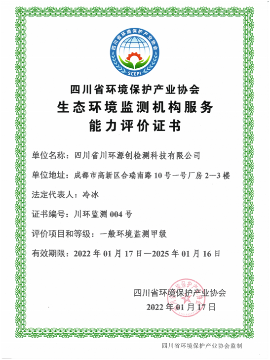 喜報(bào) 四川省川環(huán)源創(chuàng)檢測科技有限公司順利獲批 四川省環(huán)保產(chǎn)業(yè)協(xié)會(huì) 生態(tài)環(huán)境監(jiān)測機(jī)...