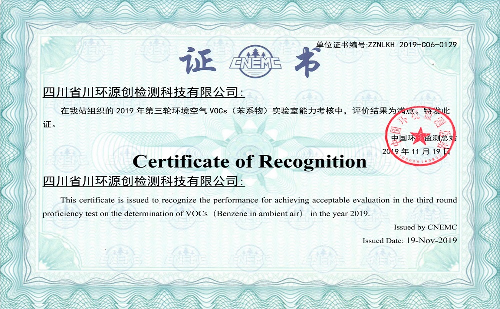 我公司順利通過環境空氣揮發性有機物(VOCs)能力驗證考核