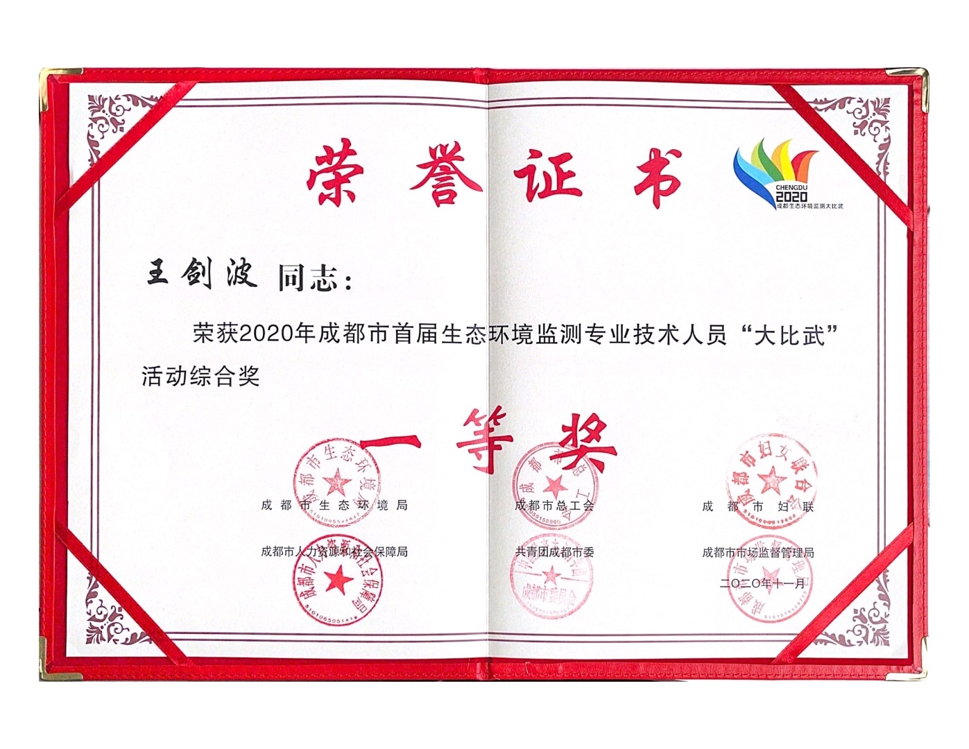 成都市首屆生態(tài)環(huán)境監(jiān)測“大比武”活動綜合一等獎