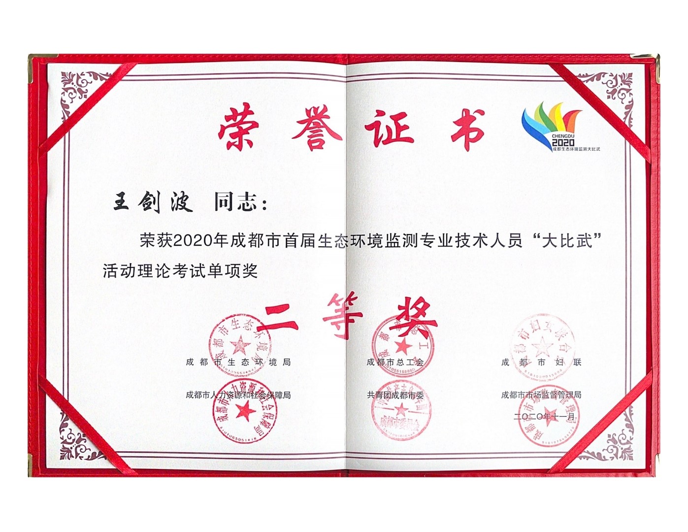 成都市首屆環(huán)境監(jiān)測“大比武”活動理論單項二等獎
