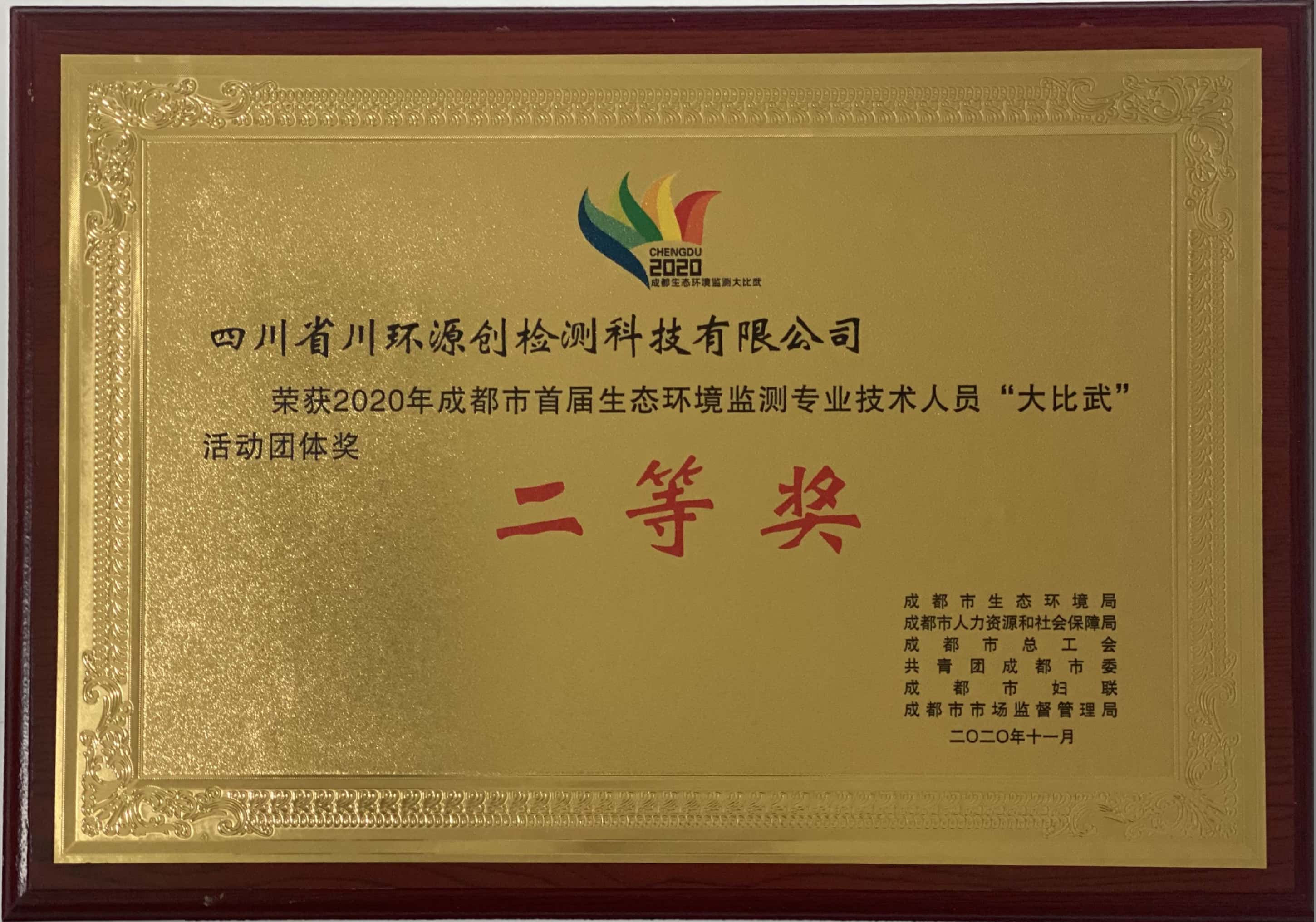 成都市首屆生態(tài)環(huán)境監(jiān)測“大比武”活動團(tuán)體二等獎