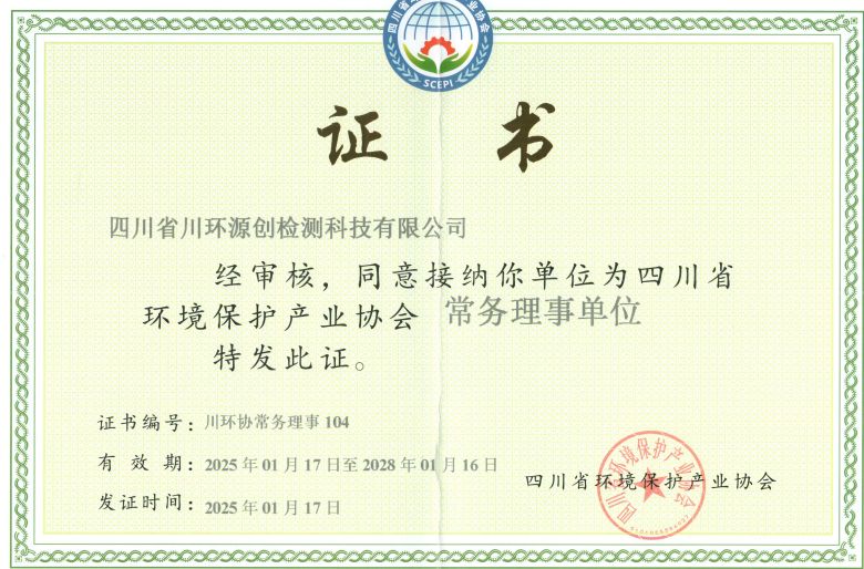 四川省環(huán)境產(chǎn)業(yè)保護(hù)協(xié)會常務(wù)理事單位